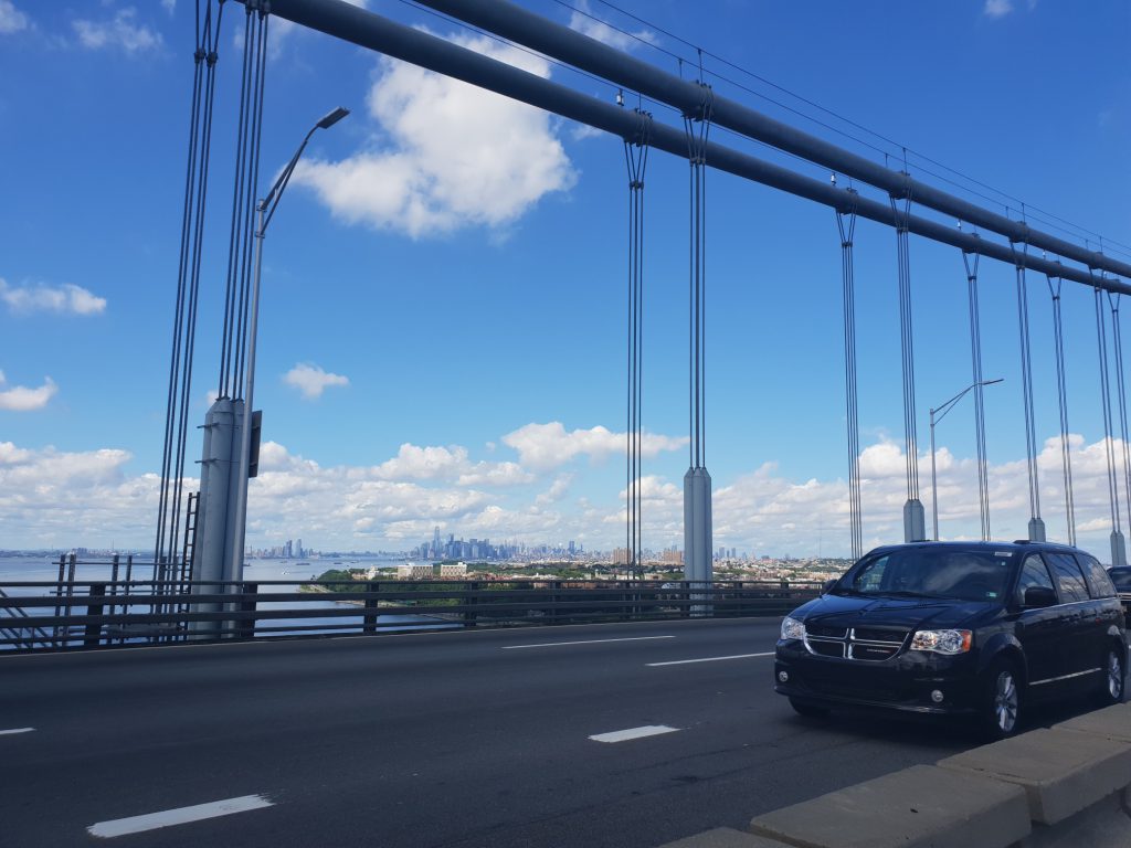 Ja und da vergehen nun die Tage wie im Fluge, apropos Flug. Wir nehmen dann unsere Karre wieder aus der Garage und gondeln dann in Richtung New York zurück. Ja es ist leider schon Samstag und wir müssen leider leider wieder nach Hause. über die Brücke nach Brookly sehen wir noch ein letztes mal die Skyline mit dem One World Trade Center.