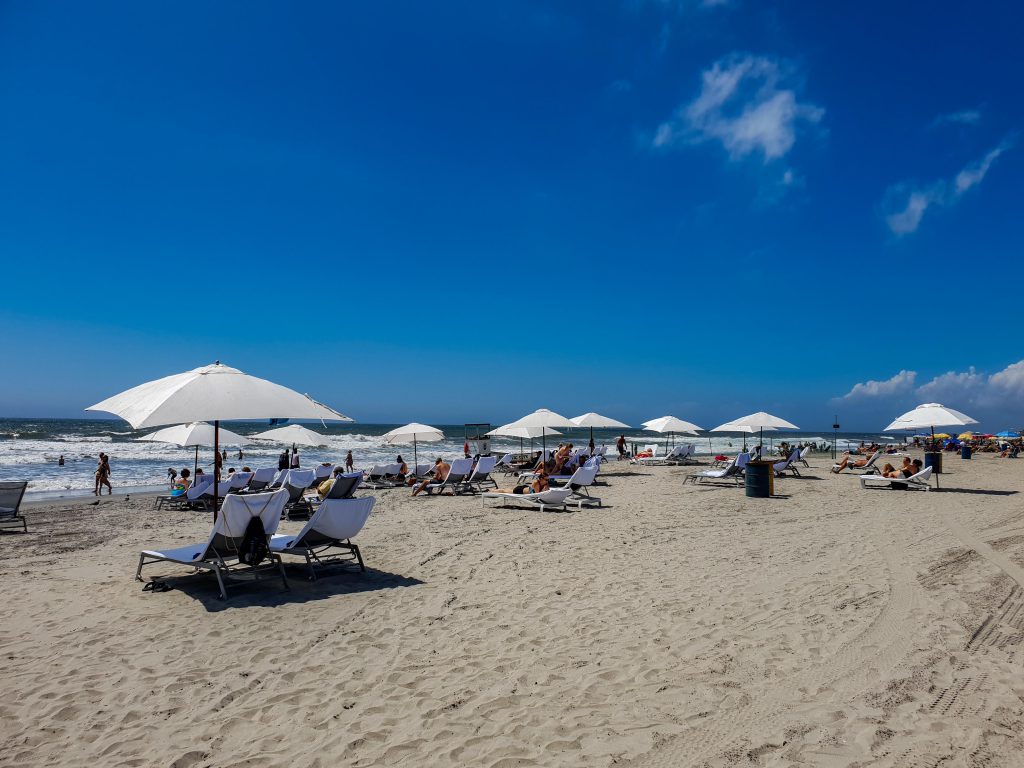 Aber nix da, zuerst ein kleiner Umweg zum nächsten Notfallarzt. Augen und Ohrenentzündung. Erstmals nix mit Strand für mich. Das Krankensystem ist toll. Angekommen beim Arzt, verlangt die Empfangsdame erst mal meinen Krankenkassenausweis, den ich natürlich im Hotel lies. Doch, ich muss den unbedingt holen, geeeht gaaar nicht anders. Also gut, ich hole das Teil, ist ja auch nur 36 Grad in der Sonne und der Weg knapp eine halbe Meile. Völlig durchnässt bin ich zurück beim Arzt. Die Empfangsdame hat gewechselt, nöööö, mit der Karte kann hier niemand was anfangen, sind ja nicht in der Schweiz, aber hallo! Tief durchgeatmet fülle ich nun die Dokumente aus, wäre ja vorher nicht gegangen ohne nutzlose Karte… Egal, ich zahl die Zeche und darf nach einer halben Stunde dann endlich zum Arzt. Der schreibt dann auch gleich ein Rezept aus welches wir in ca. einer halben Stunde abholen können. Im dem Einkaufszentrum mit Apotheke angekommen, frage ich nach den Medikamenten und… ach, es geht noch ein paar Minuten, ca. 15. Sie sind halt schwer beschäftigt… Gähn, ich schlaf bei deren Bewegungen jetzt beim schreiben schon wieder ein.. gähn… Wo war ich, ach ja, also machten wir eine Runde draussen um den Block. Versuchten was einzukaufen, Bier gibt es in den Läden in Jersey einfach nicht. Muss mich mal noch schlau machen, auch in Washington gabs nichts in den Läden, nur in Restaurants und Bars. Wir gehen dann zurück zur Apotheke. Gähn, es fängt schon wieder an… Ja leider haben sie es noch immer nicht geschafft. Also gut, ich kürze ab, nach ca. 1.5 Stunden war es dann soweit und ich erhielt meine Medikamente. Yes, der Trump der macht America Great again… oder er macht es langsamer. Trifft wohl eher zu. Mit den nötigen Vorräten und Medikamenten gings dann schnell wieder aufwärts. Am Abend gingen wir dann ins Landshark Essen. Das Essen da ist hmmm sagen wir mal, essbar. Es ist laut, es ist kalt, es ist zügig. und vorallem, es ist das letzte Mal für mich da. Es gibt hier schliesslich auch ein HRC! Ich kür dann mal kurzerhand etwas ab. Die Essen nehmen wir von jetzt an immer im Hotel zu uns, Frühstück und Lunch in den diversen Restaurants, Abendessen im HRC. Ja, das ist dann etwas für den Gaumen. Das Wetter ist jetzt wirklich sehr schön. Der Strand ein Traum. Der Life Guard hier eine richtige Nervensäge. Ist einer nicht im korrekten Bereich wird gepfiffen bis die Pfeiffe glüht. Vom Hotel her hatten wir einen kleinen privat Strand der mit Liegen und Sonnenschirmen gratis genutzt werden kann.