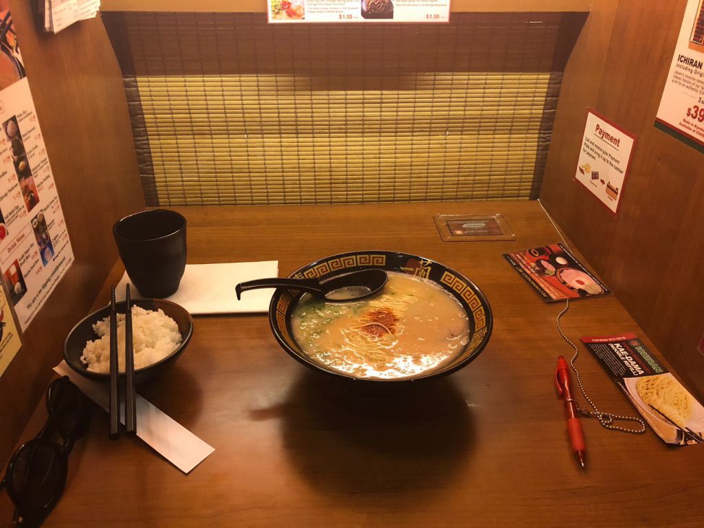 Den Rest des Tages haben wir dann zwischen Hotel, hupenden Autos und Shops verbracht. Am Abend sind wir japanisch gesätigt worden im Ichiran Ramen Restaurant. Jeder in seiner Box und individuellem Ramen. Bestellung abgeben, natürlich musste für das Bier noch der Ausweis gezeigt werden, könnte ja sein das ich noch unter 21 bin, sieht man mir auch nicht an, die 50 Lenze.
