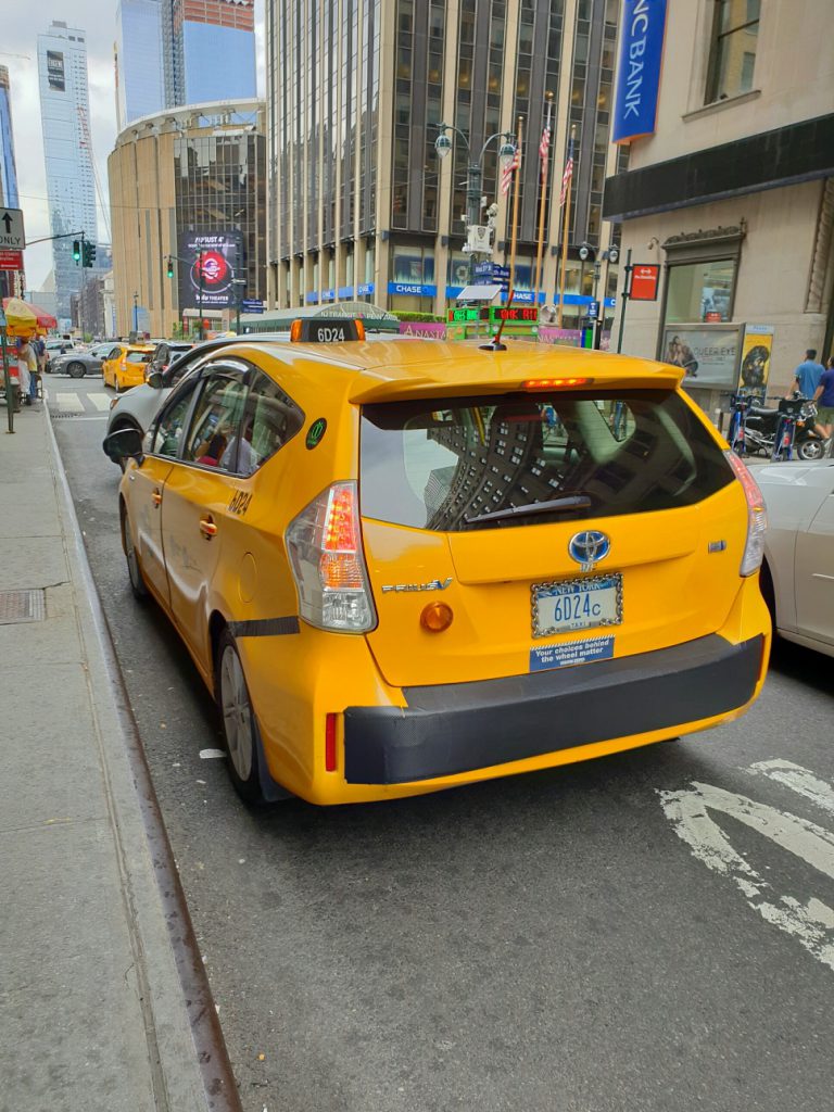 Also dann mal raus ins Gewühl. Wir haben uns schlussendlich für ein Yellow Cab entschieden. Nochmal 20 min anstehen. Dann wird uns ein Taxi zugeteilt. Ein richtig typisches amerikanisches New Yorker Taxi, ein Toyota Prius!