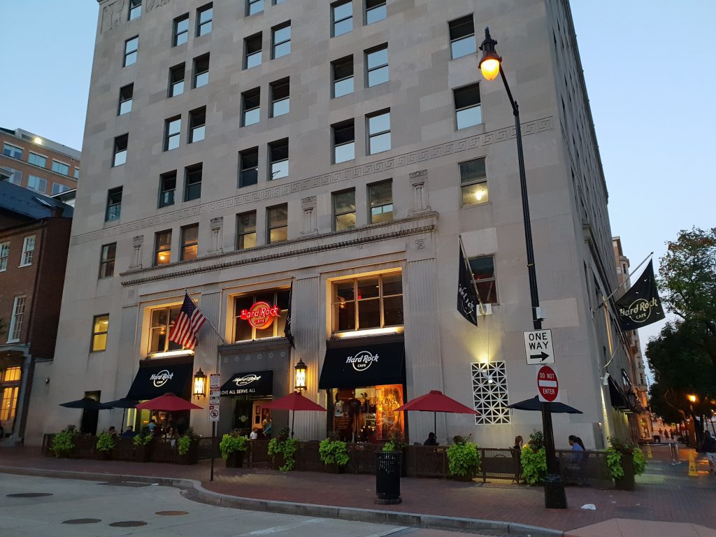 Dann kommen wir endlich an. Finden das Hotel fast auf Anhieb und können den Wagen dem Hotel Parkierdienst überlassen, also Vallet Parking. Sau teuer, muss gesagt sein. Denke das war ein Fehlentscheid, da hätte einiges an Münzen gespart werden können. Egal, man lebt nur einmal. Um 7Uhr ist ein Tisch im HRC in Washington reserviert, ja auch hier geht das.
